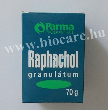A Raphachol granulátum alkalmazása ajánlott különböző emésztési panaszok – teltségérzet, puffadás okozta tünetek – csökkentésére, az epetermelés fokozására és a jobb közérzet biztosítására. Gyógyszernek nem minősülő gyógyhatású készítmény, melynek hatását több évtizedes felhasználói, népgyógyászati és szakirodalmi adat bizonyítja. A készítmény összetevői (fekete retek, édesköményolaj) epetermelést fokozó hatásuk révén az epepangást megszüntetik, és ezáltal csökken az epeképződés esélye, javítják az emésztést, megszüntetik/csökkentik a puffadást és a teltségérzetet. Az édesköményolaj részben elfedi a fekete retek erős szagát.
