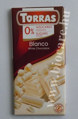 A Torras fehér csokoládé gluténmentes édesség, mely hozzáadott cukor nélkül, édesítőszerrel készül. A termék diabetikus és gluténmentes étrendbe beilleszthető.
